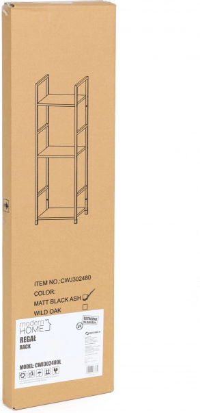 - Trwałe materiały – metalowa rama i półki z MDF w dekorze drewna.