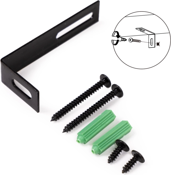 - Bezpieczne mocowanie do ściany – kątownik i śruby w zestawie.