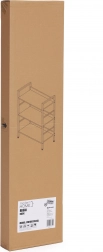 Przemyślane detale zwiększają komfort codziennego użytkowania: regulowane nóżki wyrównują nierówności podłogi, a ochronne stopki zapobiegają zarysowaniom. Dzięki kompaktowej podstawie półka sprawdzi się w mniejszych przestrzeniach, a otwarta konstrukcja nadaje jej lekkości i przewiewności.