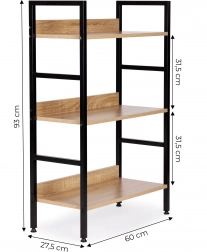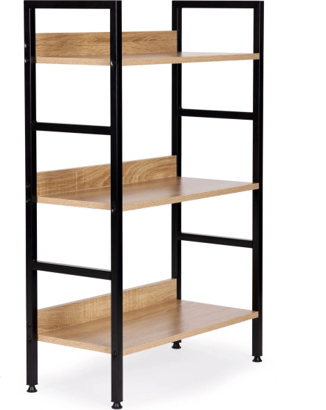 Ta trzypoziomowa półka loftowa łączy naturalny wygląd drewna z industrialnym metalem, tworząc ponadczasowy element do każdego wnętrza. Płyty z MDF z dekorem drewna o wymiarach 60 × 27,5 cm oferują dużo miejsca na książki, dekoracje i praktyczne drobiazgi, a metalowa rama malowana proszkowo gwarantuje stabilność i długą żywotność.
