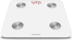 UMAX Smart Scale US20M to elegancka i niezawodna inteligentna waga do codziennej kontroli zdrowia. Dzięki bioelektrycznej analizie impedancji (BIA) dostarcza precyzyjnych danych o Twoim ciele, a dzięki bezprzewodowemu przesyłowi do czytelnej aplikacji w języku polskim zyskujesz natychmiastowy dostęp do wyników i ich historii.