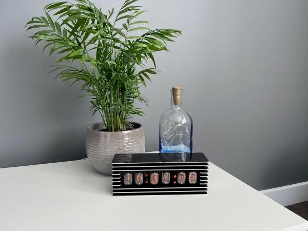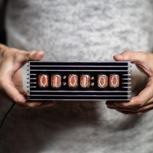 Limitowana edycja zegara Nixie z 6 lampami IN‑12. Zmontowany, design z PCB, gotowy do ustawienia na stole i na ścianie. Tylko 599 sztuk.