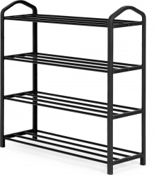 Metalowy stojak na buty z czterema półkami w nowoczesnym designie marki ModernHome jest doskonałym rozwiązaniem do organizacji obuwia w domu i biurze. Jego uniwersalna konstrukcja umożliwia łatwe ułożenie aż 12 par butów na powierzchniach wykonanych z metalowych rurek, co zapewnia ich stabilność nawet przy maksymalnym obciążeniu.