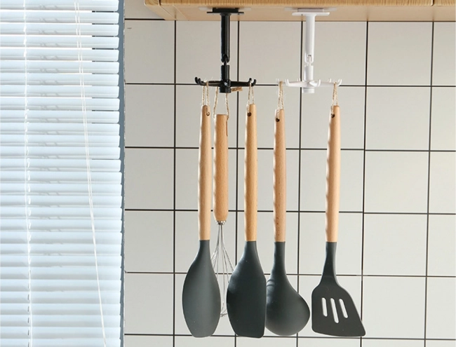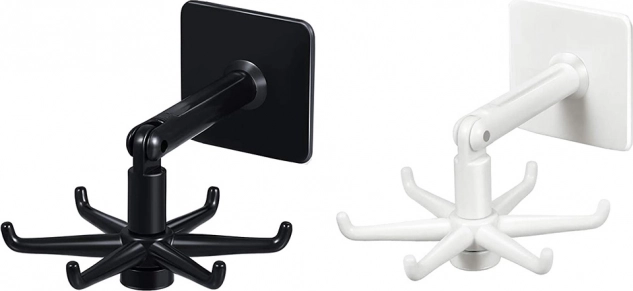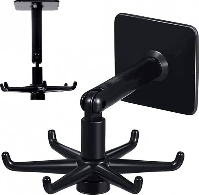 Wieszak wykonany jest z wysokiej jakości plastiku i zaprojektowany tak, aby zapewniać uniwersalne rozwiązanie do zawieszania nie tylko kuchennych naczyń, ale także łazienkowych akcesoriów jak gąbki czy ręczniki. Dzięki obrotowemu designowi o 360° możesz łatwo i szybko dostać się do wszystkich przechowywanych rzeczy.
