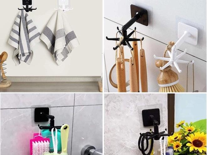 Sześć ramion do zawieszania różnych przedmiotów, idealny do kuchennych narzędzi i łazienkowych akcesoriów.