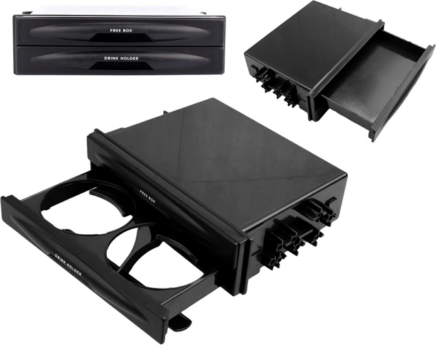 Jednodinowa kieszeń samochodowa z uchwytem na napoje, montowana w standardowym radiu (1 DIN). Ten funkcjonalny uchwyt na kubki zapewnia wygodny i bezpieczny transport napojów w Twoim aucie, szczególnie tych otwartych. Zawiera dwie kieszenie – górna służy jako schowek, a dolna jako klasyczny uchwyt na napoje.