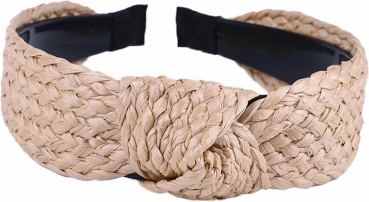Rattanowa opaska z wyrazistym ozdobnym węzłem. Wewnątrz znajduje się standardowa plastikowa opaska.
