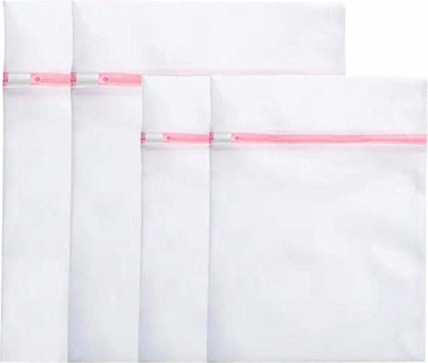 Zestaw zawiera cztery woreczki w dwóch różnych rozmiarach: dwa woreczki o wymiarach 30 cm x 40 cm oraz dwa woreczki o wymiarach 60 cm x 50 cm. Wykonane z wysokiej jakości poliestru w białym kolorze, są idealnym rozwiązaniem do ochrony delikatnej bielizny i odzieży.