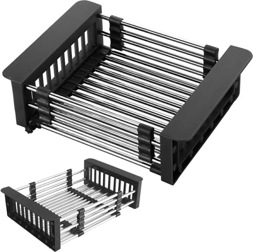 Odkryj wygodę dzięki uniwersalnej i rozkładanej suszarce na zlew, która stanie się niezbędnym pomocnikiem w Twojej kuchni. Dzięki gęsto rozmieszczonym stalowym prętom zapewnia bezpieczne odkładanie naczyń. Silikonowe krawędzie ułatwiają stabilne mocowanie, a teleskopowa konstrukcja pozwala na łatwe dopasowanie do niemal każdego zlewu.