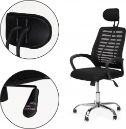 Wysoce wytrzymała siatka i chromowana metalowa podstawa gwarantują długą żywotność i stabilność krzesła.