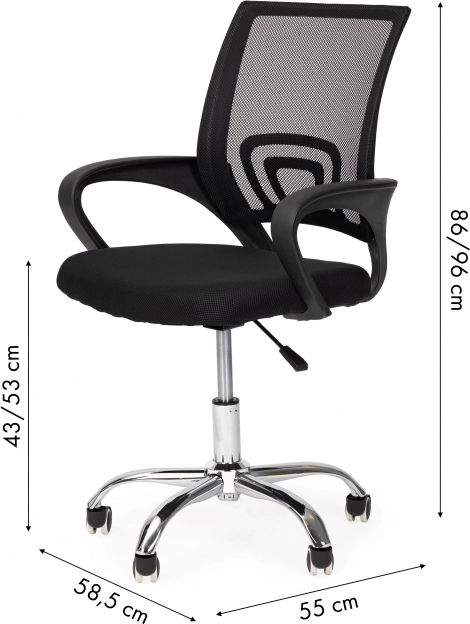 Krzesło wyposażono w łatwe w obsłudze mechanizmy pełnej regulacji, co czyni je przyjaznym w użytkowaniu. Wytrzymała siatka na oparciu zapewnia dobrą wentylację, a metalowa, chromowana podstawa z pięcioma kółkami gwarantuje stabilność i mobilność.