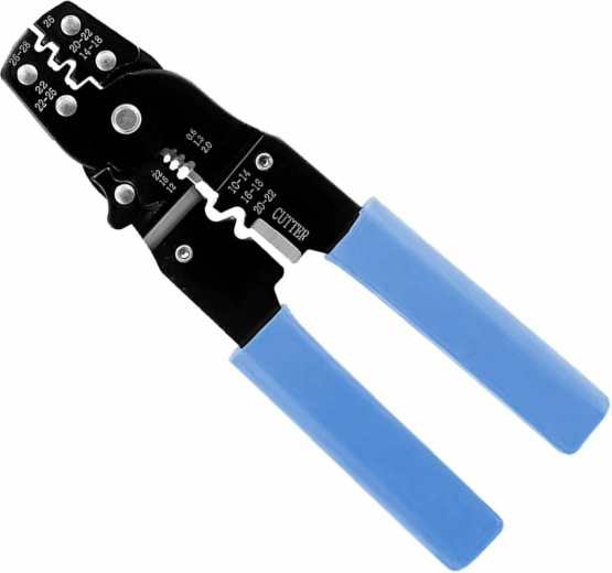 Uniwersalne narzędzie do zaciskania wtyków i konektorów, zarówno nieizolowanych, jak i izolowanych. Wyposażone w dodatkowe ostrze do cięcia przewodów. Niezbędne narzędzie dla każdego montera okablowania i elektronika, a także przydatne do codziennego użytku w domu.