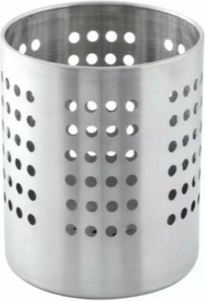 Uniwersalny metalowy ociekacz na sztućce. Wyposażony w gęstą siatkę otworów, również u podstawy, co zapobiega gromadzeniu się wilgoci. Smukła konstrukcja znacznie ułatwia ustawienie ociekacza w pobliżu zlewu. Jego stonowany wygląd pasuje do każdej kuchni.