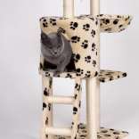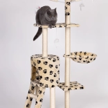 Wielopoziomowy drapak dla kotów o wysokości 138 cm oferuje 5 poziomów, 3 platformy widokowe, przytulny domek do spania, wygodny hamak oraz 4 zawieszane myszki dla zabawy. Wszystkie słupki są owinięte naturalnym sizalem do bezpiecznego ostrzenia pazurów, pokryte miękkim pluszem dla maksymalnego komfortu i osadzone na stabilnej podstawie dla bezpiecznego wspinania i zabawy.