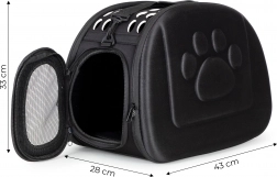 Kiedy transporter nie jest używany, można go złożyć do mniejszego rozmiaru, co pozwala zaoszczędzić miejsce. Złożone wymiary: 33 x 43 x 8 cm.