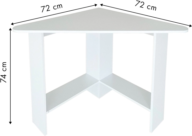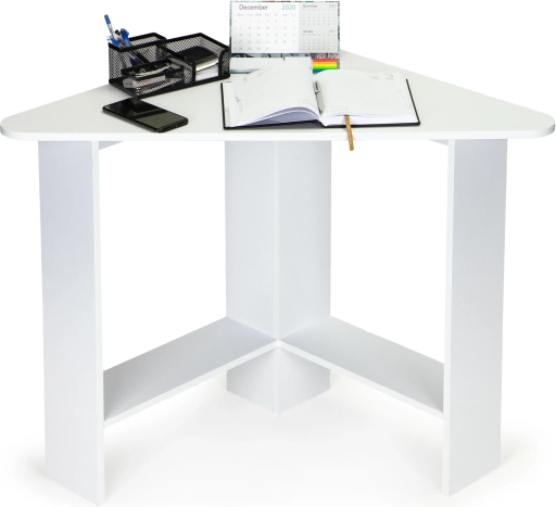 Trójkątny blat pozwala wsunąć biurko w róg, maksymalnie wykorzystując dostępne miejsce w pokoju, biurze czy kąciku do nauki.