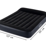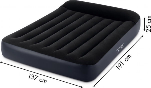 Łóżko dmuchane INTEX jest idealne dla dwóch osób – świetnie sprawdzi się dla gości, na działkę i kemping. Wierzchnia warstwa z przyjemnym welurowym pokryciem jest wodoodporna i komfortowa do leżenia, a wytrzymałe PVC zapewnia odporność. Wbudowana pompa elektryczna (220–240 V) przygotuje łóżko do użycia w około 250 sekund, a duży zawór umożliwi szybkie spuszczenie powietrza i łatwe złożenie.