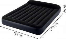 Dwuwarstwowy materac dmuchany INTEX o wymiarach 203 × 152 × 25 cm oferuje wygodne spanie dla 2 osób w domu i w podróży. Wykonany z wytrzymałego PVC, z przyjemną, wodoodporną powłoką welurową. Dzięki wbudowanej pompie elektrycznej napompujesz go w około 250 sekund. Stabilna konstrukcja z technologią Dura-Beam Fiber zapewnia doskonałe podparcie kręgosłupa, a zintegrowana poduszka dodaje dodatkowego komfortu. Praktyczny zawór umożliwia szybkie spuszczanie powietrza i łatwe przechowywanie.