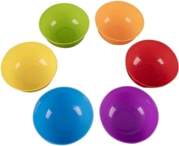 Kolorowe miski i figurki zachęcają dzieci do rozpoznawania barw i prostego liczenia poprzez zabawę. Idealne do przygotowania przedszkolnego.