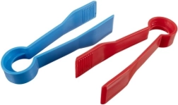 Dwie lekkie plastikowe pęsety wspierają prawidłowy chwyt, koordynację i precyzję podczas przenoszenia figurek do misek.