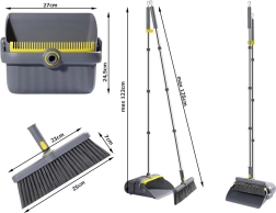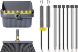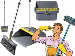 Zestaw zawiera szczotkę do zamiatania i szufelkę z długą rączką, co gwarantuje wygodne użytkowanie bez konieczności schylania się.