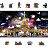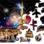 Luksusowe drewniane puzzle z motywem nocnego Paryża i fajerwerków zapewniają wyjątkowe wrażenia z układania. Unikalnie kształtowane elementy inspirowane budowlami, przedmiotami i zwierzętami ucieszą każdego miłośnika oryginalnych łamigłówek. Dwustronne wykonanie 2w1 pozwala układać zarówno według kolorowego motywu, jak i według powtarzającego się wzoru na rewersie.