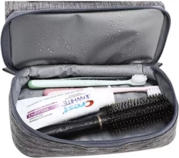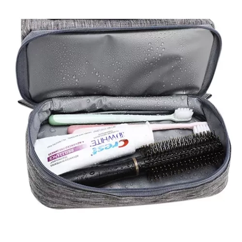 Torba wykonana jest z materiałów odpychających wodę, co jest idealne do użycia w łazience lub w podróży.