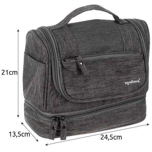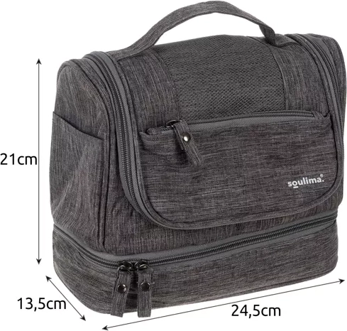 Pojemna kosmetyczka Soulima jest idealna do organizacji i transportu Twoich osobistych artykułów higienicznych w podróży. Zajmuje mało miejsca i oferuje świetną organizację dzięki kilku kieszeniom.