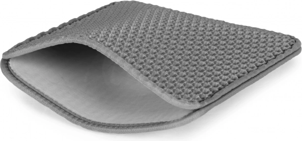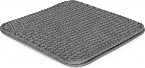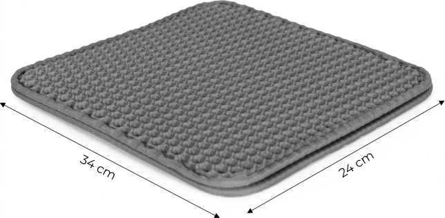 Praktyczna dwuwarstwowa mata pod kocią kuwetę w eleganckim, szarym kolorze marki PETSI utrzymuje okolice toalety w czystości. Dzięki górnej warstwie o siatkowej strukturze rozsypany żwirek zostaje wychwycony, wpada do wnętrza maty i łatwo go wysypać. Mata jest antypoślizgowa, wytrzymała, bezpieczna dla łapek i łatwa w czyszczeniu.