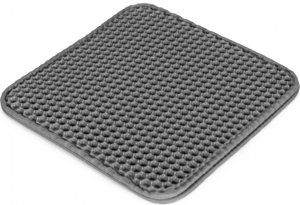 Koniec z roznoszeniem żwirku po mieszkaniu. Dwuwarstwowa mata PETSI z strukturą plastra miodu/mesh wyłapuje granulki żwirku tuż przy wyjściu z kuwety. Zanieczyszczenia wpadają do dolnej komory, skąd w kilka chwil wysypiesz je z powrotem do kuwety lub do kosza.