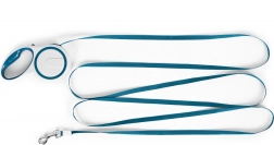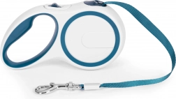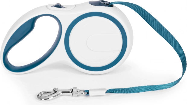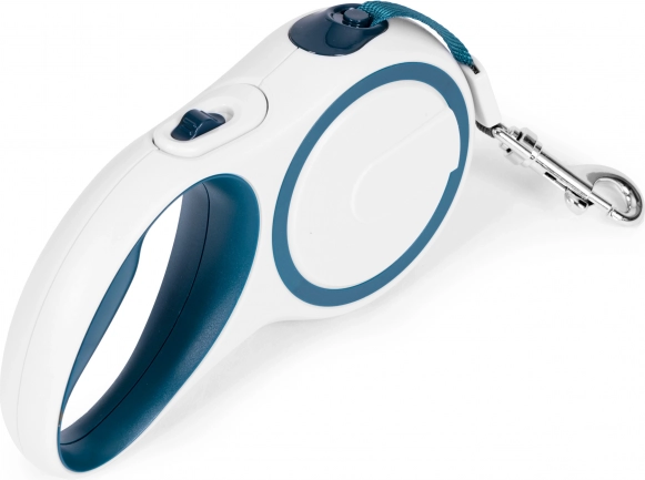 Design w biało‑niebieskiej kolorystyce wygląda czysto i nowocześnie oraz łatwo się go czyści. Smycz to świetny wybór na codzienne spacery po mieście i w parku.