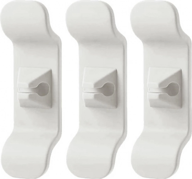 Zestaw 3 samoprzylepnych wieszaków służących jako organizer kabli. Każdy wieszak umożliwia przypięcie przewodu do specjalnego klipsa pośrodku. Zapobiegają plątaniu kabli i ułatwiają ich przejrzyste uporządkowanie. Są bardzo mocne – po przyklejeniu doskonale przylegają do powierzchni dzięki silnemu klejowi.