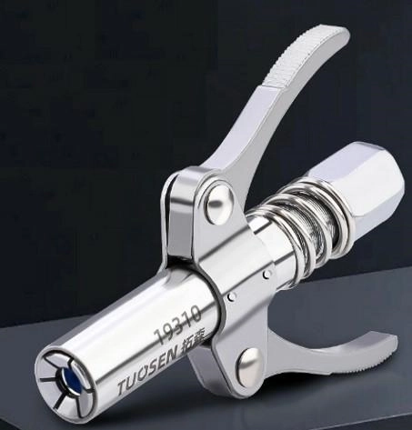 Samozaciskowa szybkozłączka jest wyposażona w sześć szczęk oraz uszczelnienie, które pomaga minimalizować wycieki podczas procesu smarowania. Konstrukcja umożliwia wygodną obsługę jedną ręką dzięki podwójnemu uchwytowi. Ta końcówka jest wysoce uniwersalna i kompatybilna z różnymi typami pistoletów do smaru (ręcznymi, pneumatycznymi i elektrycznymi) oraz dyszami typu M6 / M8 / M10 / M12 / M14.