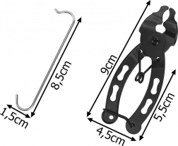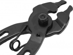 Te uniwersalne szczypce zostały zaprojektowane do łatwego otwierania i zamykania szybkozłączek w łańcuchach rowerowych. Dzięki precyzyjnej mechanice i sprężynie wykonasz konserwację łańcucha szybko, bezpiecznie i bez zbędnego wysiłku. W zestawie znajduje się praktyczny hak do łańcucha, który utrzymuje łańcuch w napięciu podczas czyszczenia, smarowania lub wymiany.
