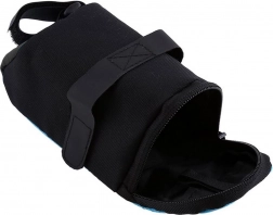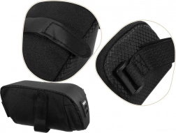 Torba mocowana jest do sztycy i siodła za pomocą rzepów, co gwarantuje stabilność i eliminuje niechciane ruchy podczas jazdy.