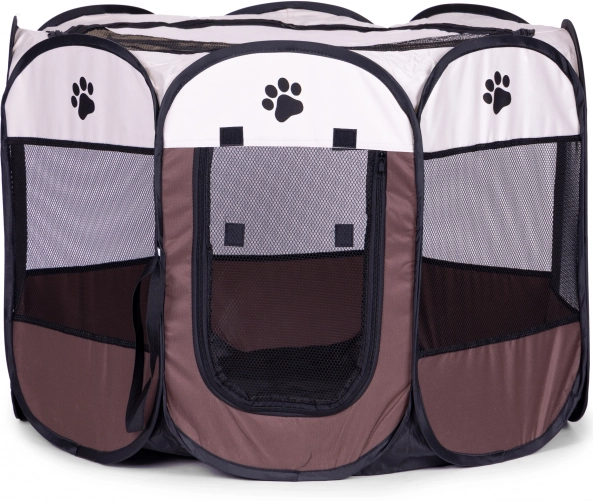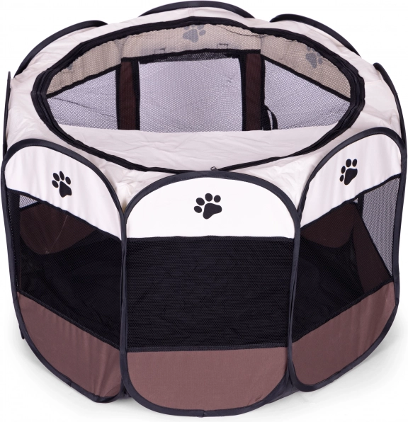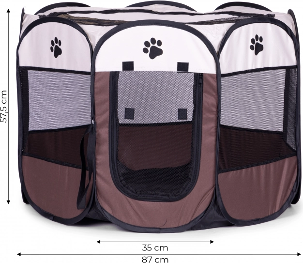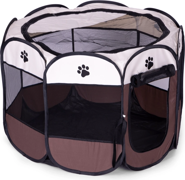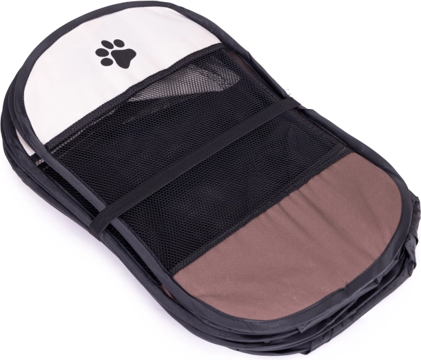 Praktyczna i lekka samorozkładająca się zagroda dla psów, szczeniąt, kotów i małych zwierząt z wentylowanymi ściankami z siatki oraz górną pokrywą zapinaną na zamek. Idealna do wnętrz i na zewnątrz do bezpiecznego odpoczynku, treningu i krótkotrwałego ograniczenia ruchu. Stabilna sprężynowa konstrukcja, łatwe czyszczenie i wygodny otwór wejściowy dla maksymalnego komfortu pupila.