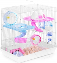 Cztery poziomy połączone dwiema zjeżdżalniami oraz zintegrowany kołowrotek wspierają naturalną aktywność i pomagają utrzymać gryzonie w świetnej kondycji każdego dnia.