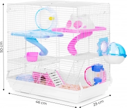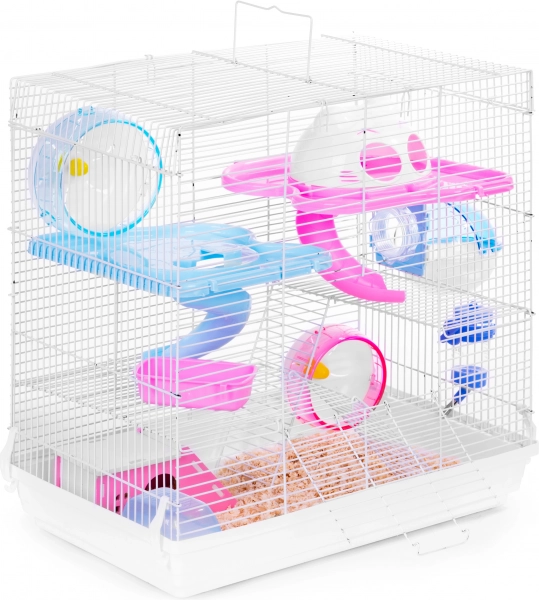Przemyślana klatka PETSI tworzy idealne środowisko dla chomików, szczurów i innych małych gryzoni. Wiele poziomów z łączącymi je zjeżdżalniami wspiera naturalny ruch i eksplorację, a domek zapewnia spokojne miejsce do odpoczynku. Dzięki wysokiej jakości materiałom klatka jest wytrzymała, stabilna i jednocześnie bezpieczna dla zwierząt.