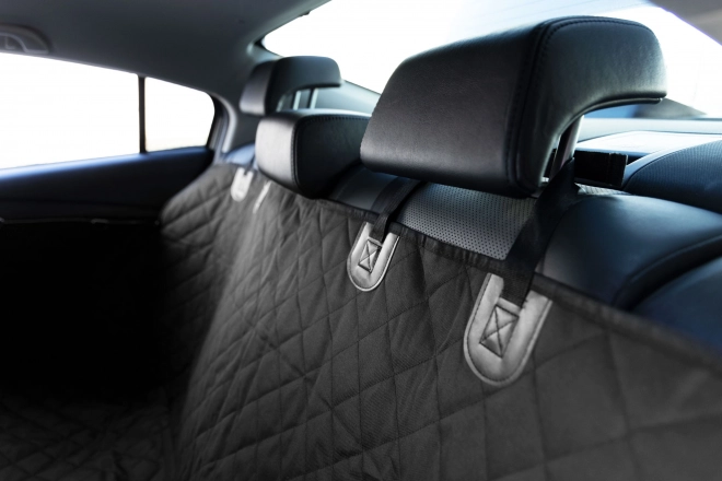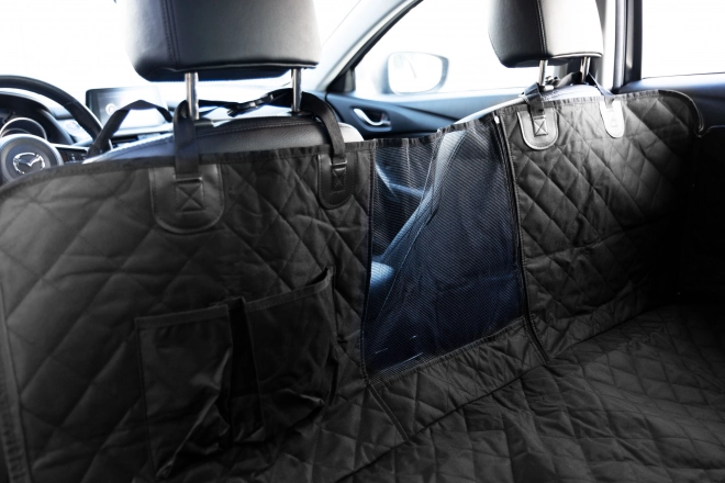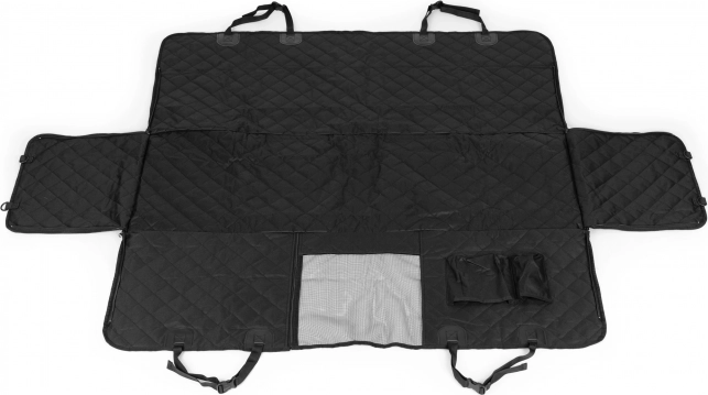 Pikowany, trwały pokrowiec zakrywa całą tylną kanapę i chroni tapicerkę przed sierścią, błotem oraz zarysowaniami. Dwie kieszenie pomieszczą smycz, przysmaki i drobiazgi, aby były zawsze pod ręką.