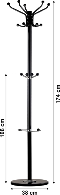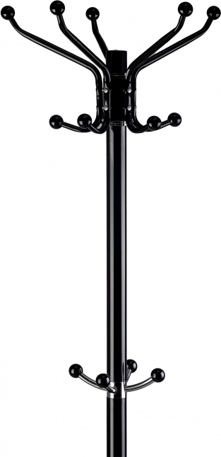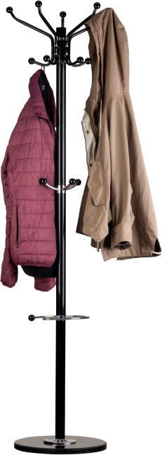 W górnej części znajduje się pięć ramion, na których można zawiesić po dwie kurtki. W połowie wysokości znajdują się dodatkowe haczyki, odpowiednie na kapelusze, parasole lub torebki.