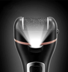 Czytelny wyświetlacz i przyciski ułatwiają obsługę. Przełączaj między niską prędkością do pielęgnacji a wysoką do twardej skóry. Zintegrowane światło LED zwiększa precyzję zabiegu.