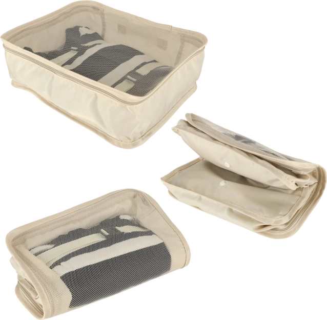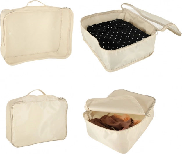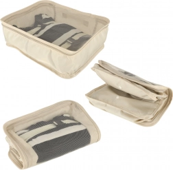 Organizery wykonano z lekkiego i wytrzymałego poliestru, który łatwo się czyści i dobrze opiera się zabrudzeniom. Zestaw idealny na wakacje, podróże służbowe oraz do domowego przechowywania.