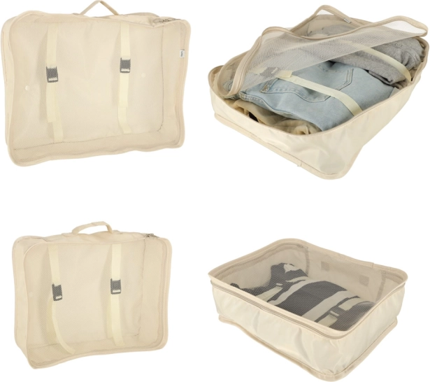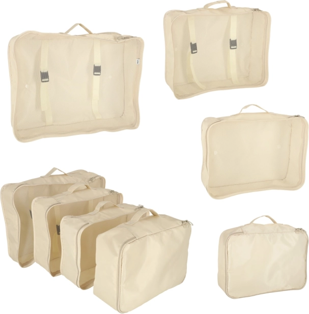 Zaprowadź porządek w swoim bagażu raz na zawsze. Ten 8‑częściowy zestaw podróżnych organizerów w eleganckim beżu obejmuje cztery kostki na odzież, torbę na buty, kosmetyczkę, worek ze ściągaczem oraz małą kieszeń na drobiazgi. Dzięki lekkiej i wytrzymałej poliestrowej tkaninie organizery są łatwe w czyszczeniu, odporne na zabrudzenia i idealne do przejrzystego pakowania na wyjazdy i na co dzień.