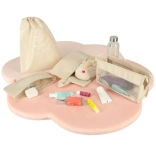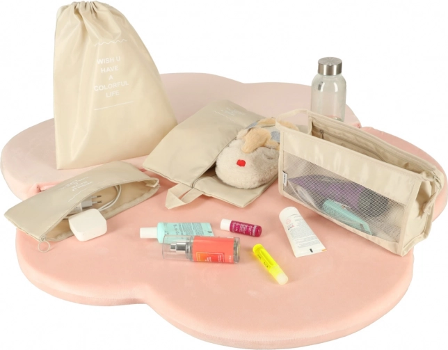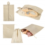 W skład zestawu wchodzi osobny worek na obuwie ze ściągaczem oraz mniejsze kieszenie na kosmetyki i drobne przedmioty, aby wszystko było bezpiecznie oddzielone.
