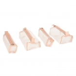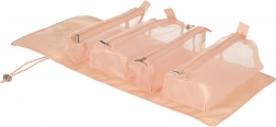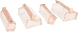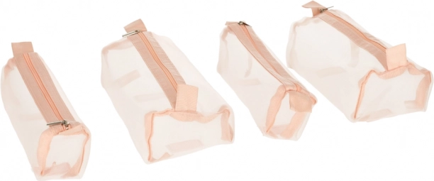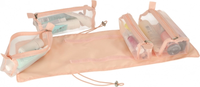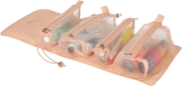 Cztery odpinane, zapinane na suwak przegródki wykonane są z przezroczystego materiału, co ułatwia przeglądanie i organizację kosmetyków. Odpinane przegródki zapewniają wszechstronność zastosowań.