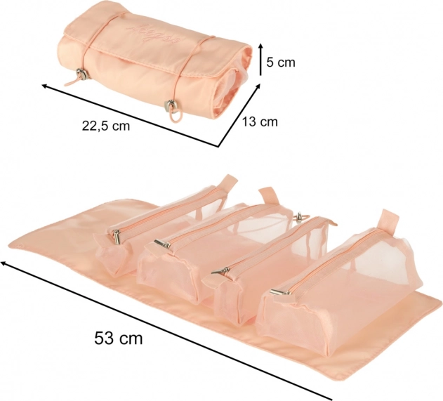 Torba kosmetyczna ma praktyczny design, który umożliwia zrolowanie do kompaktowego kształtu. Jest więc idealna do podróży, gdzie oszczędza miejsce w bagażu.