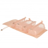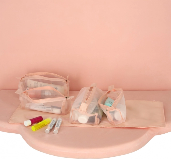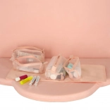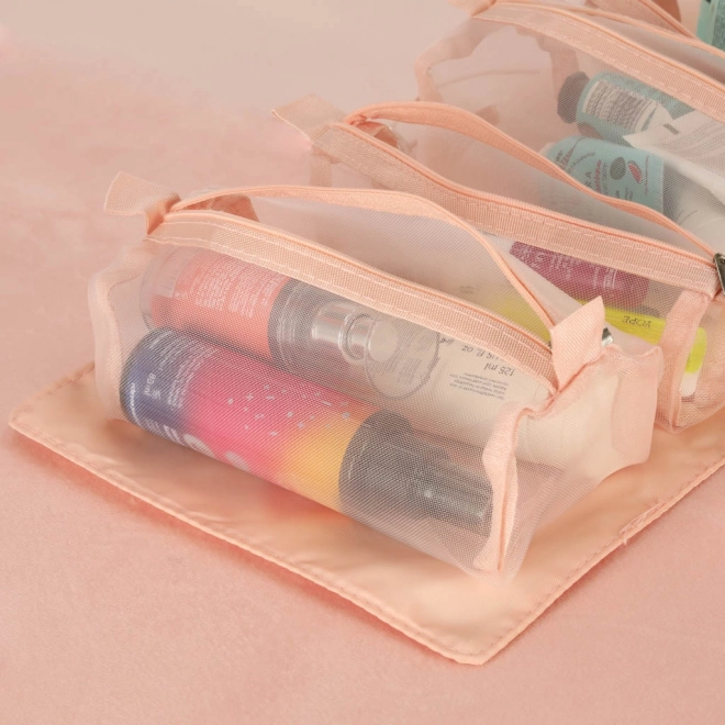 Ta różowa kosmetyczna torba została zaprojektowana dla osób, które cenią wygodę i efektywność w organizacji swoich kosmetyków w podróży. Torba wyposażona jest w cztery przezroczyste przegródki na suwak, które zapewniają łatwy dostęp i widoczność zawartości. Przegródki są w pełni odpinane, co zapewnia dużą elastyczność użycia.