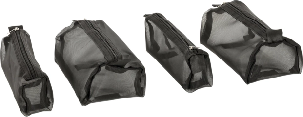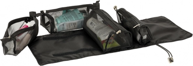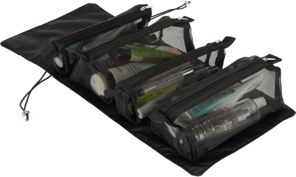 Siatkowe ścianki pozwalają łatwo znaleźć kosmetyki i zapewniają dobrą wentylację wilgotnych opakowań.