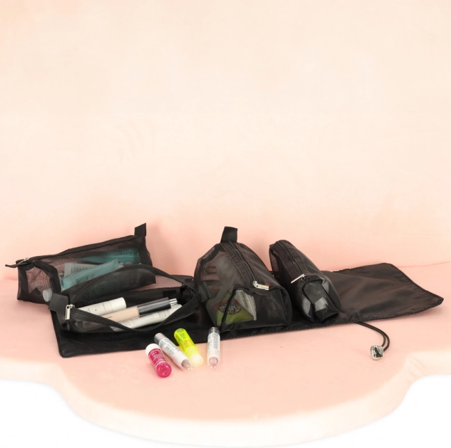 Składana podróżna torba na artykuły toaletowe oferuje sprytne rozwiązanie do organizacji rzeczy osobistych w podróży dzięki dużej pojemności i praktycznemu designowi.
