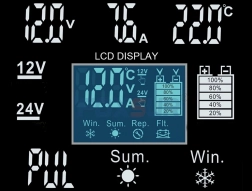 - Wskaźnik LCD stanu ładowania, napięcia i prądu